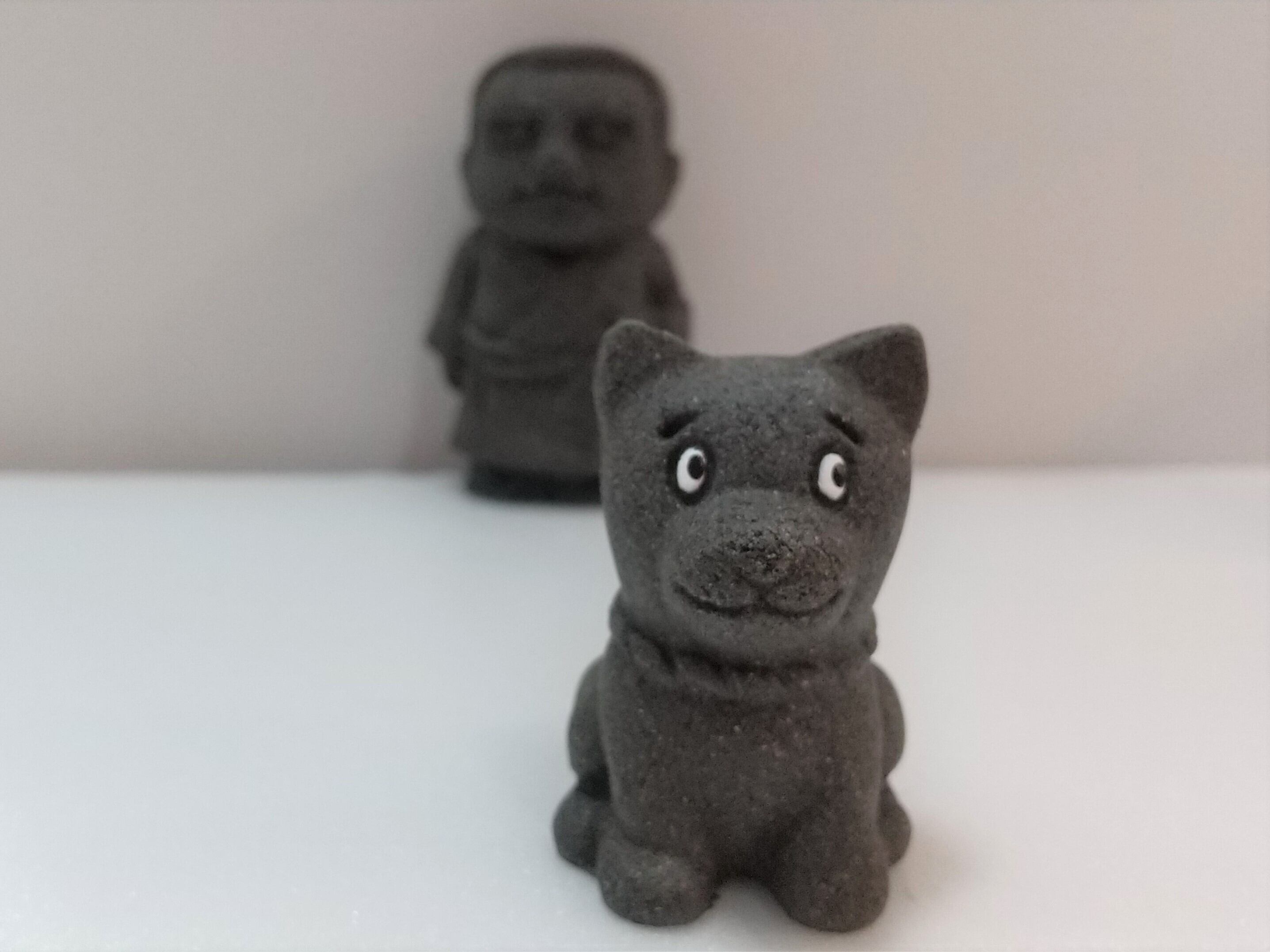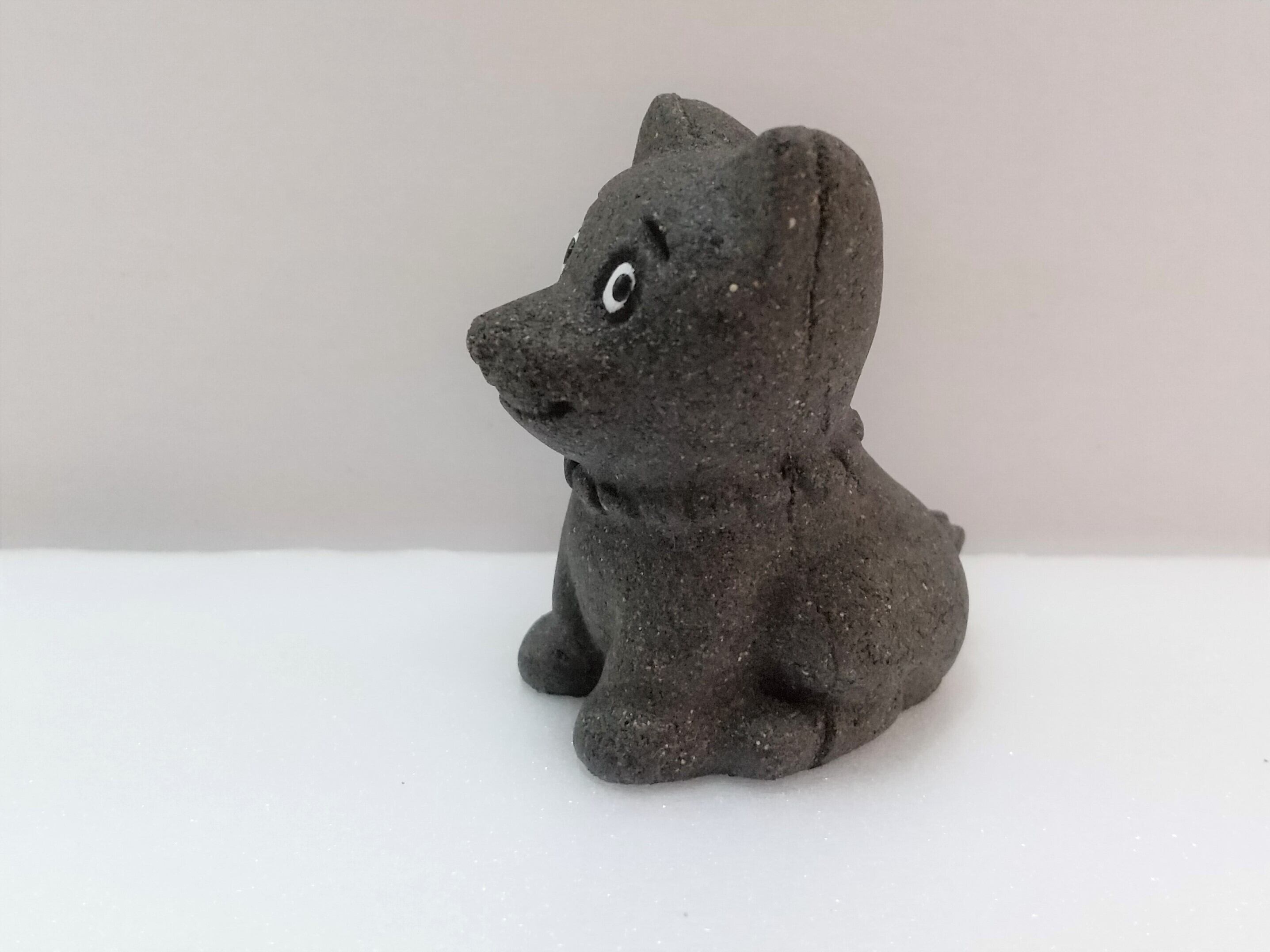 桜島の火山灰を素材に、薩摩の英雄・西郷隆盛の愛犬「ツン」のフィギュアです